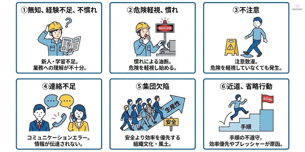 - 集団欠陥: 組織全体における安全文化の不足。集団としての意識と改善が求められる。
