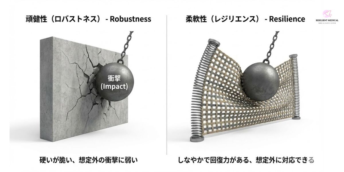 ジェームズ・リーズンは「頑健性(ロバストネス)」ではなく「柔軟さ(レジリエンス)」が重要だと主張しているのです。