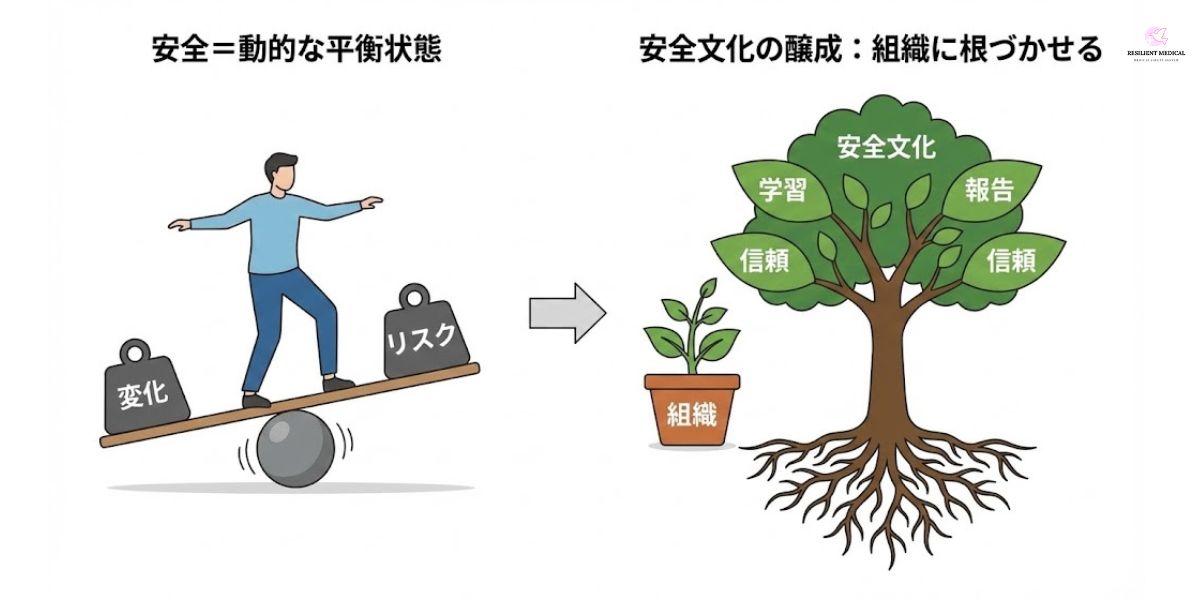 - 安全は動的な平衡状態であり、安全文化の醸成が組織的な力となります。