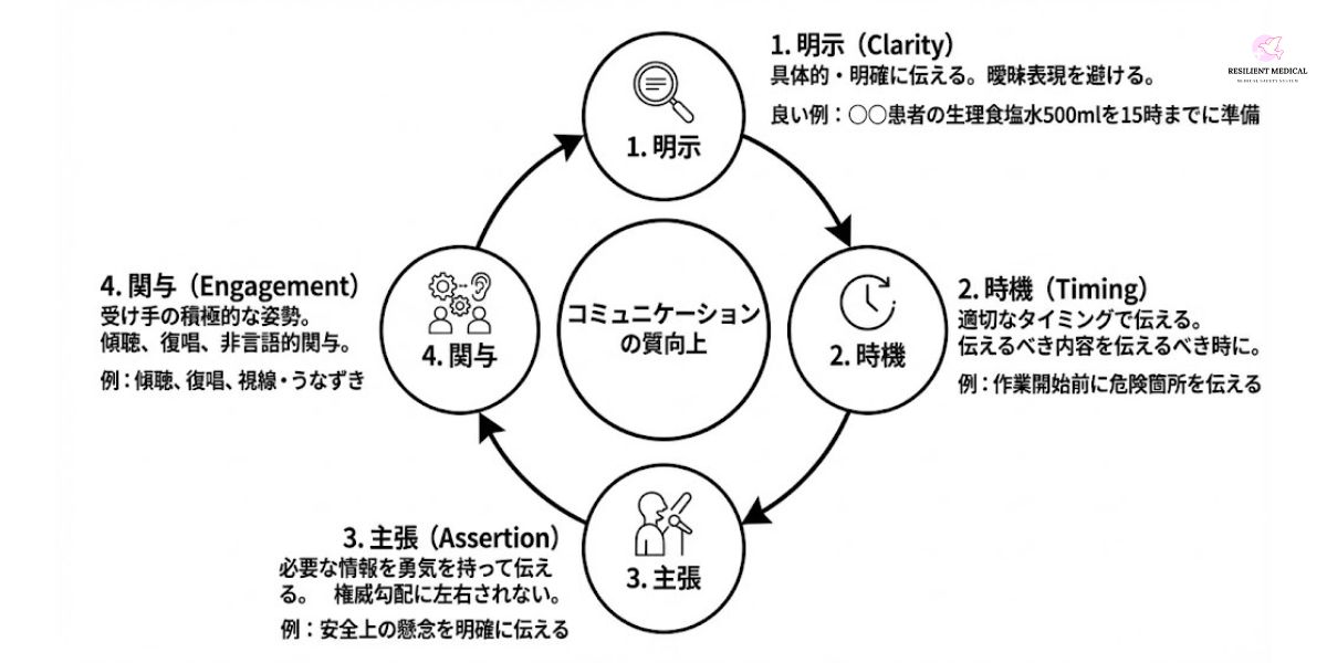 単に「伝えた」だけでは安全は担保されない。質の高いコミュニケーションを実現するためには、明示・時機・主張・関与の4要素を意識することが不可欠である。