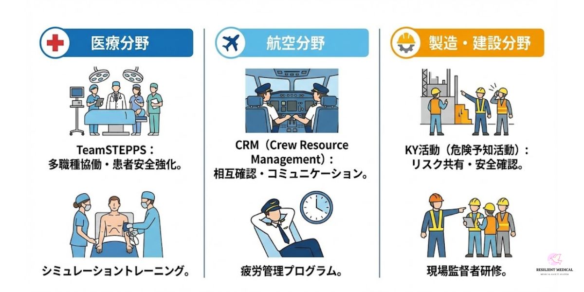 したがって、どの産業においてもチームワーク教育はノンテクニカルスキル研修の柱であり、安全文化の醸成と組織の持続的成長を支える基盤といえる。