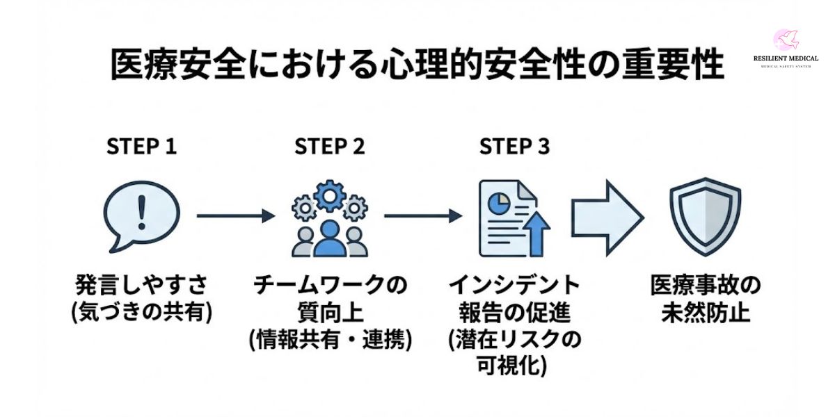 心理的安全性は単なる「職員の満足度向上」にとどまらず、患者の生命を守るための実践的アプローチであり、これからの医療安全の中核的概念である。