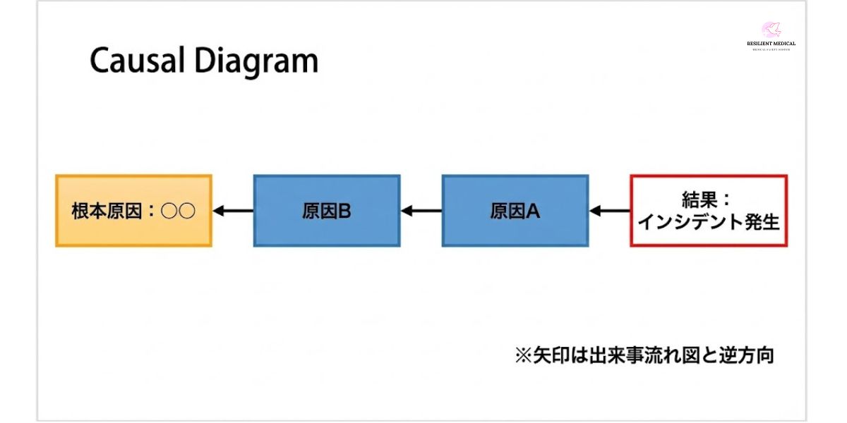 RCA(根本原因分析)とはインシデント(ヒヤリハット)やアクシデントの真因分析をする手法です。