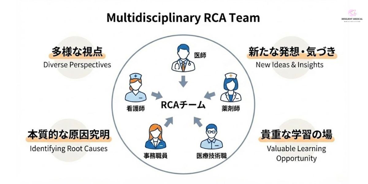 また、RCAを実施するチームに参加することは、スタッフにとって貴重な学習の場ともなります。教育という意味において、分析に参加することは非常に有益なものになります。