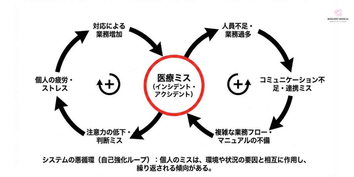 このループ図はミスによる有害事象が発生した場合の一例です。
