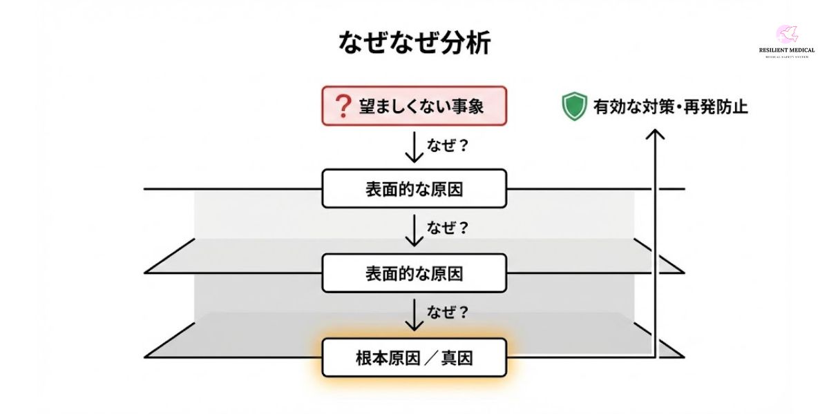 なぜなぜ分析の目的は、あくまでも望ましくない事象の改善であり対策をすることです。根本原因(真因)を把握するのは、そのための手段であり目的ではありません。