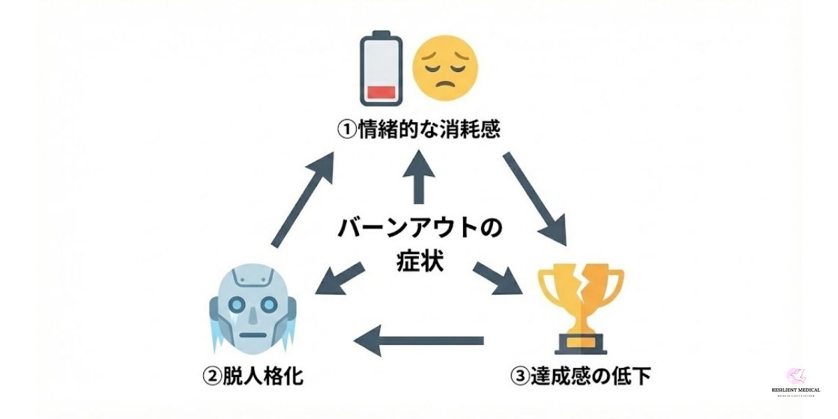 バーンアウトに陥る際にみられる特徴は以下の3つです。
