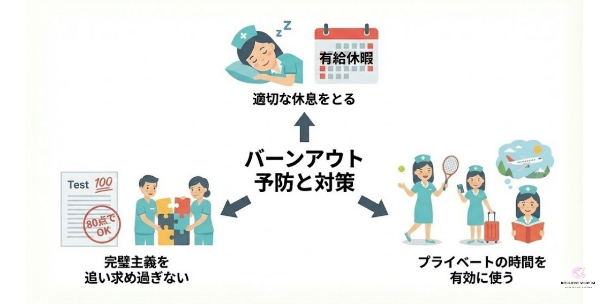 バーンアウトになった場合は、同僚や上司に相談することが大切であり、看護師としての原点を忘れず、葛藤や悩みを一人で抱え込まずに解決するよう心掛けることが重要です。
