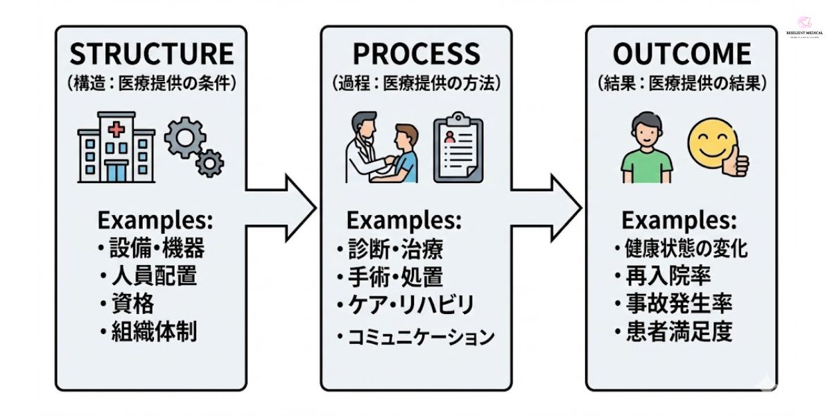 クリニカルインディケーターのストラクチャー(構造)プロセス(過程)アウトカム(結果)