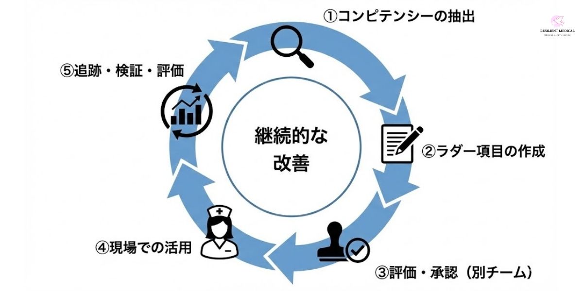 そのため、クリニカルラダーの作成はゴールではなくスタートに過ぎないということを忘れないことが重要なのです。