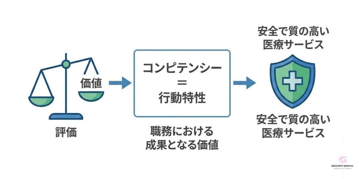 コンピテンシー評価の要点は、優れた成果をあげているスタッフの行動特性を把握して、それを組織全体で共有することにあります。それによって、組織全体のパフォーマンスを向上させ、医療の質・安全の向上を実現しうるのです。