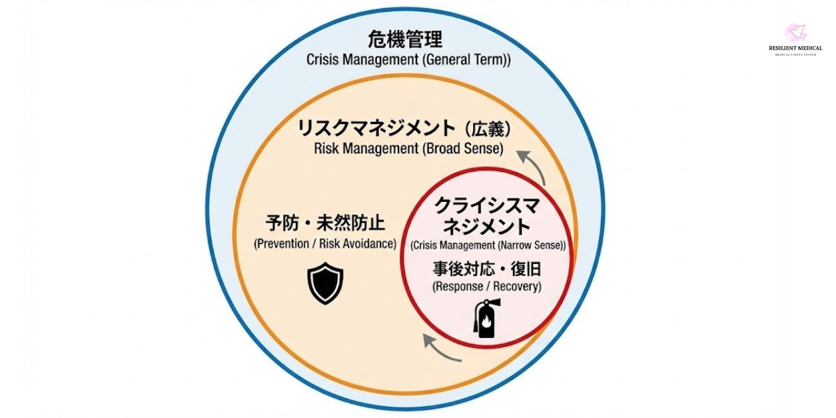 一般的にはクライシスマネジメントという言葉よりも、リスクマネジメントの方が馴染みのある言葉だと思います。そもそも「危機管理」という言葉がリスクマネジメントと同義として扱われていることが多いと感じます。