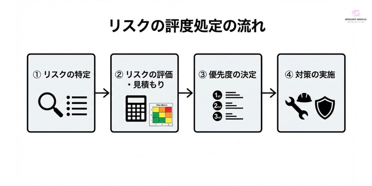 リスクアセスメントの手順は以下の通りである: