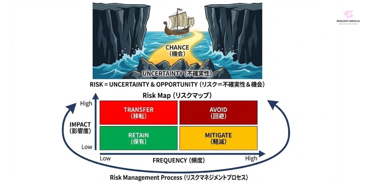 例えば医療は「医療を提供する」という目的があっても、リスクがあるからという理由で何も行わなければ、リスクも無いがチャンス(医療によって得られる利益)も無いということになります。