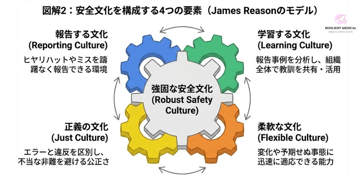 「安全は妥協できない」「ミスは組織の学びの機会」といった、メンバーが無意識に抱く信念。これらが浸透して初めて、自発的なリスク報告や相互のチェック&サポートが日常的に行われるようになる。psnet.ahrq.gov