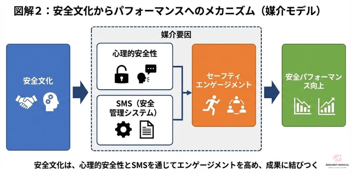 3.2 安全文化からパフォーマンスへのメカニズム:心理的安全性とSMS(安全管理システム)の仲介