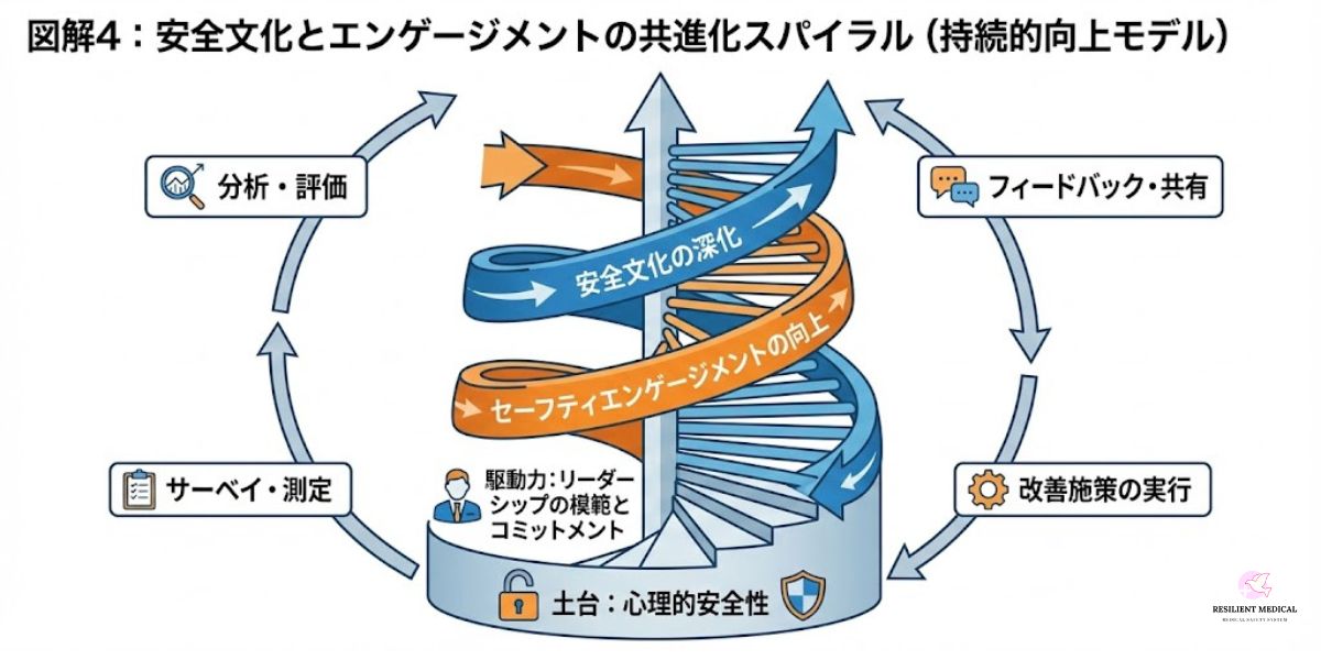以上の4つの介入を相互補完的に設計することで、セーフティエンゲージメントは単発的な施策にとどまらず、組織文化として持続的に根付くことが可能となる。